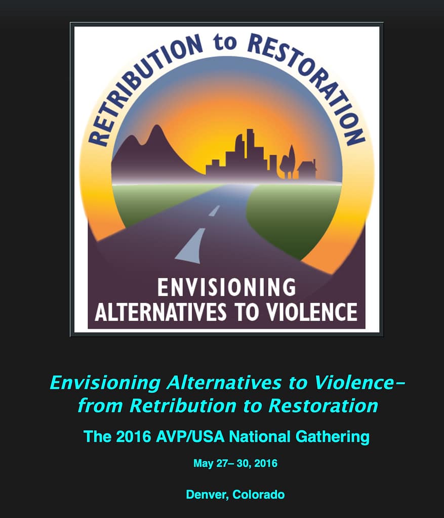 ‘Off the Hook’ — The college theater was the setting for an evening musical production of the Poetic Justice Project called “Off the Hook.”  Set in a prison marked by racial strife, the production followed the paths of three new inmates (“fish”) as they struggled with their incarceration and how to respond to the wisdom or corruption of older inmates. All cast members had been incarcerated in youth, county, state or federal prisons. Some had begun acting with the Poetic Justice Project while still inside. The public was invited to the production and was introduced to the work of AVP by a conference spokesperson. The cast introduced themselves; one had done an AVP Basic workshop.