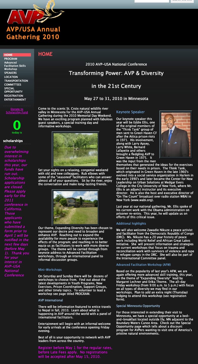 National Program Evaluation—An invitation to provide input and express interest in joining a program evaluation of AVP in prison settings by other regional groups.  Hear what is proposed inMinnesota working with the Wilder Foundation.