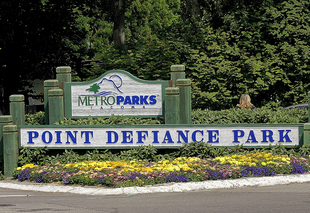 Point Defiance Park in Tacoma, Washington is the largeest urban park in the United States. The 702-acre (2.84 km2) park includes Point Defiance Zoo & Aquarium, the Rose Garden, Rhododendron Garden, beaches, trails, a boardwalk, a boathouse, a Washington State Ferries ferry dock for the Point Defiance-Tahlequah route to Vashon Island, Fort Nisqually, an off-leash dog park, and most notably a stand of old-growth forest.Point Defiance Park offers something for all its visitors, both wildlife and people. From high cliffs overlooking the Tacoma Narrows people can watch bald eagles feed on salmon runs passing through on the strong tidal currents. Their calls can be heard from their nests in the old-growth forest that is preserved and makes up the northern section of the park.  The network of roads and trails weaving through the forest preserve provides a quiet retreat for joggers, cyclists, and hikers.Â